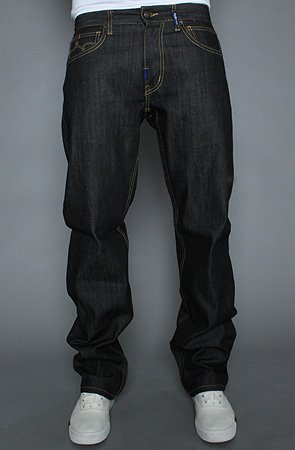 LRG The Catacombs True Straight Fit Jean in Raw Black,Denim for Men: Model is wearing a size 32" The Catacombs Classic 47 True Straight Fit Jean is made from 100% cotton and features six total pockets zipper fly LRG signature buttons and rivets a leather LRG patch at the right back pocket and LRG embroidery at the left back pocket and leather belt patch. By LRG