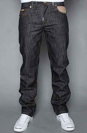LRG The Roots People True Straight Fit Jean in Raw Dark Indigo,Denim for Men: Model is wearing a size 32" The Roots People True Straight Fit Jean is made from 100% cotton and they feature six total pockets (including a discolored left change pocket) an LRG gold plaque at the right change pocket a zipper fly with a tag and one button closure a beltline patch colored embroidery on the back pockets and visible stitching throughout. By LRG