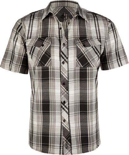 Ezekiel Brady woven shirt. Button front. Allover plaid. Chest pockets with button flap closures. Ezekiel embroidery at high back. Short sleeve. 100% cotton. Machine wash. Imported.