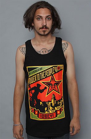 Obey The Power Basic Tank Top in Black,Tank Tops f...
