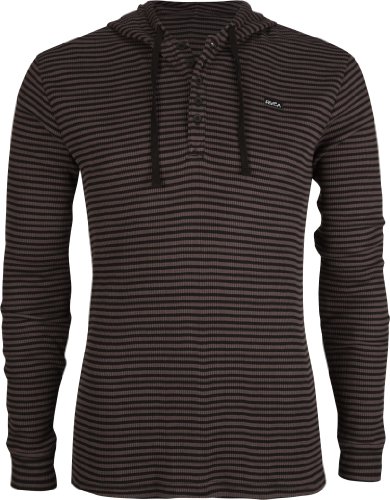 RVCA Remix hooded henley thermal. Allover horizontal stripes. Drawstring hood. Small RVCA patch applique at left chest. Long sleeve. 60% cotton/40% polyester. Machine wash. Imported.