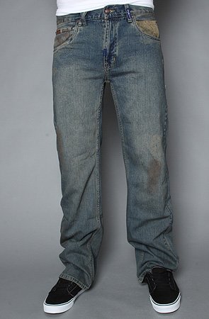 LRG The High Plains Drifter Modern Classic Fit Jean in Medium Indigo,Denim for Men: Model is wearing a size 32" The High Plains Drifter Modern Classic Fit Jean is made from 100% cotton and features six pockets (including a discolored left change pocket and an LRG copper plaque at the other) a zipper fly with one button closure a leather LRG patch on the back beltline embroidery on the back pockets and a stained look throughout. By LRG