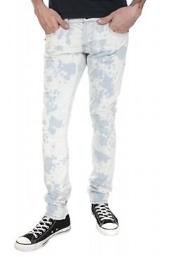 These rude fit jeans feature a light blue acid wash and a button-up fly.